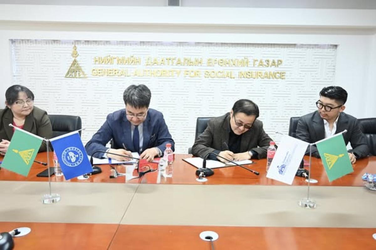 Энэ хүрээнд өнөөдөр /2025.04.10/ Нийгмийн даатгалын ерөнхий газар, Монгол улсын их сургуулийн Бизнесийн сургуультай хамтран ажиллах санамж бичигт гарын үсэг зурлаа. Тус үйл ажиллагаанд Нийгмийн даатгалын ерөнхий газрын дарга Б.Батжаргал, холбогдох газар, хэлтсийн дарга нар болон Монгол улсын их сургуулийн Бизнесийн сургуулийн захирал профессор Н.Батнасан, холбогдох газрын мэргэжилтнүүд оролцлоо.