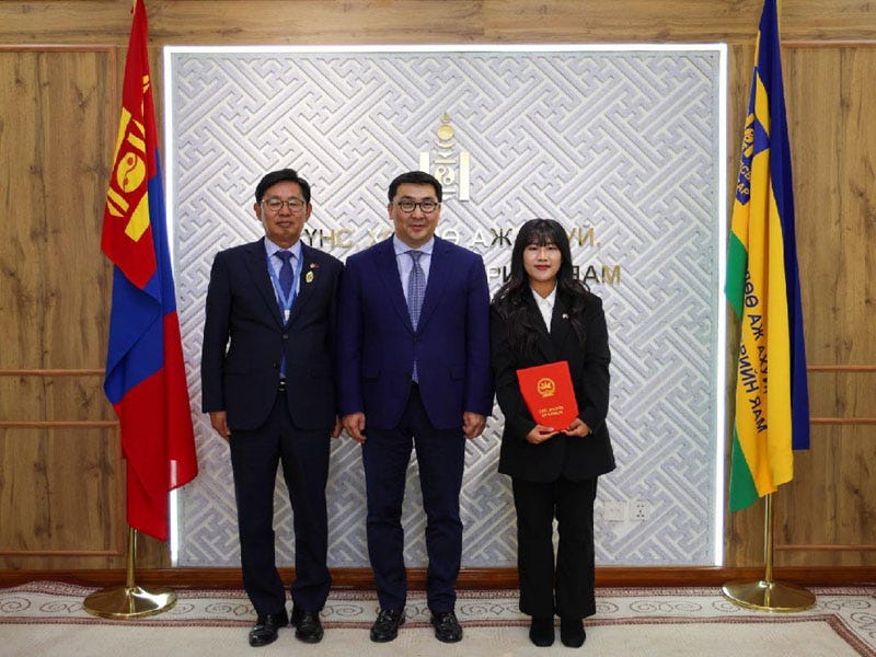 Шагналыг ХХААХҮЯ-ны Төрийн нарийн бичгийн дарга Т.Жамбалцэрэн гардуулж, баяр хүргэлээ.