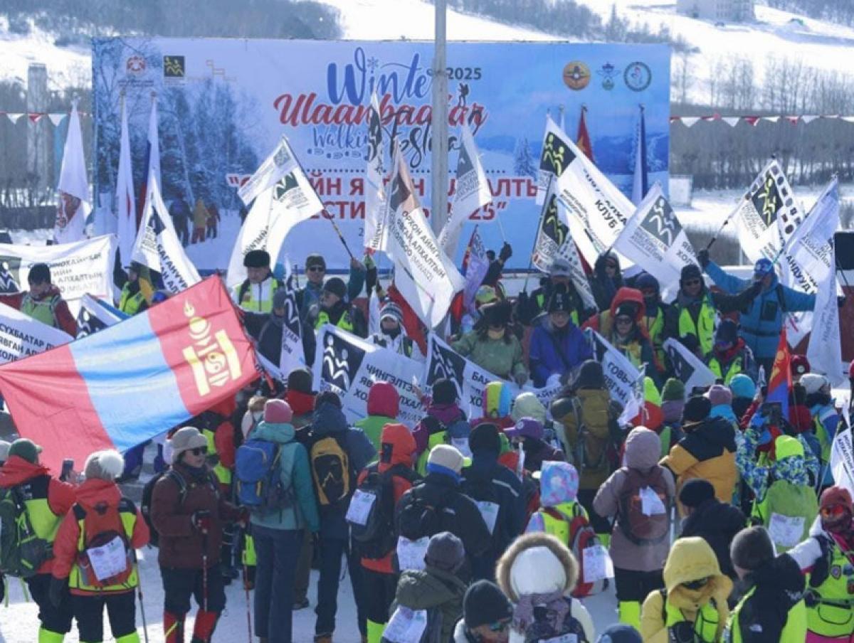 “Улаанбаатар өвлийн явган алхалт-2026" олон улсын арга хэмжээнд оролцогчид Д.Сүхбаатарын талбайгаас Горхи-Тэрэлжийн байгалийн цогцолборт газар руу хөдөллөө.