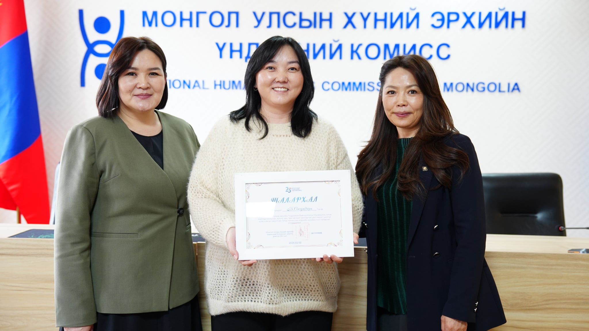 Энэ үеэр Иргэний нийгмийн зөвлөлийн гишүүн, Монголын эрэгтэйчүүдийн холбооны удирдах зөвлөлийн гишүүн М.Чинзориг, ЛГБТ төвийн гүйцэтгэх захирал Э.Энхмаа нарын хүний эрхийг хангах, хамгаалах, хөхиүлэн дэмжих үйл хэрэгт оруулсан хувь нэмрийг нь үнэлж, Хүний эрхийн Үндэсний Комиссын “Жуух бичиг”-ээр шагнаж, зөвлөлийн гишүүдэд Хүний эрхийн Үндэсний Комиссын 25 жилийн ойн талархал гардуулав гэж ХЭҮК-оос мэдээллээ.