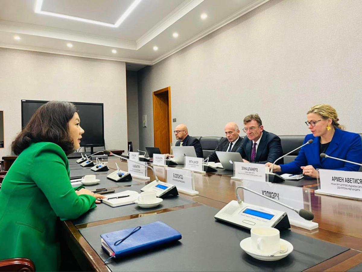 Хууль зүй, дотоод хэргийн дэд сайд Б.Солонгоо Нэгдсэн Үндэстний Байгууллагын Эрүү шүүлтээс урьдчилан сэргийлэх дэд хорооны Элина Штайнерте тэргүүтэй гишүүдтэй 2024 оны 05 дугаар сарын 15-ны өдөр уулзлаа.