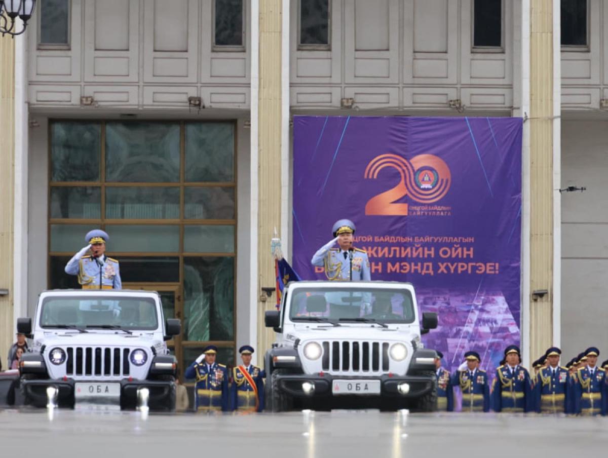 Түүхт ойн өдрийг тохиолдуулан Монгол Улсын Үндэсний аюулгүй байдал, ард түмний амар амгалан амьдралын баталгаа болсон Онцгой байдлын байгууллага үүсэн байгуулагдсан түүхт 20 жилийн ойд зориулсан цэргийн ёслол, хүндэтгэлийн жагсаалыг өнөөдөр Сүхбаатарын талбайд зохион байгууллаа.