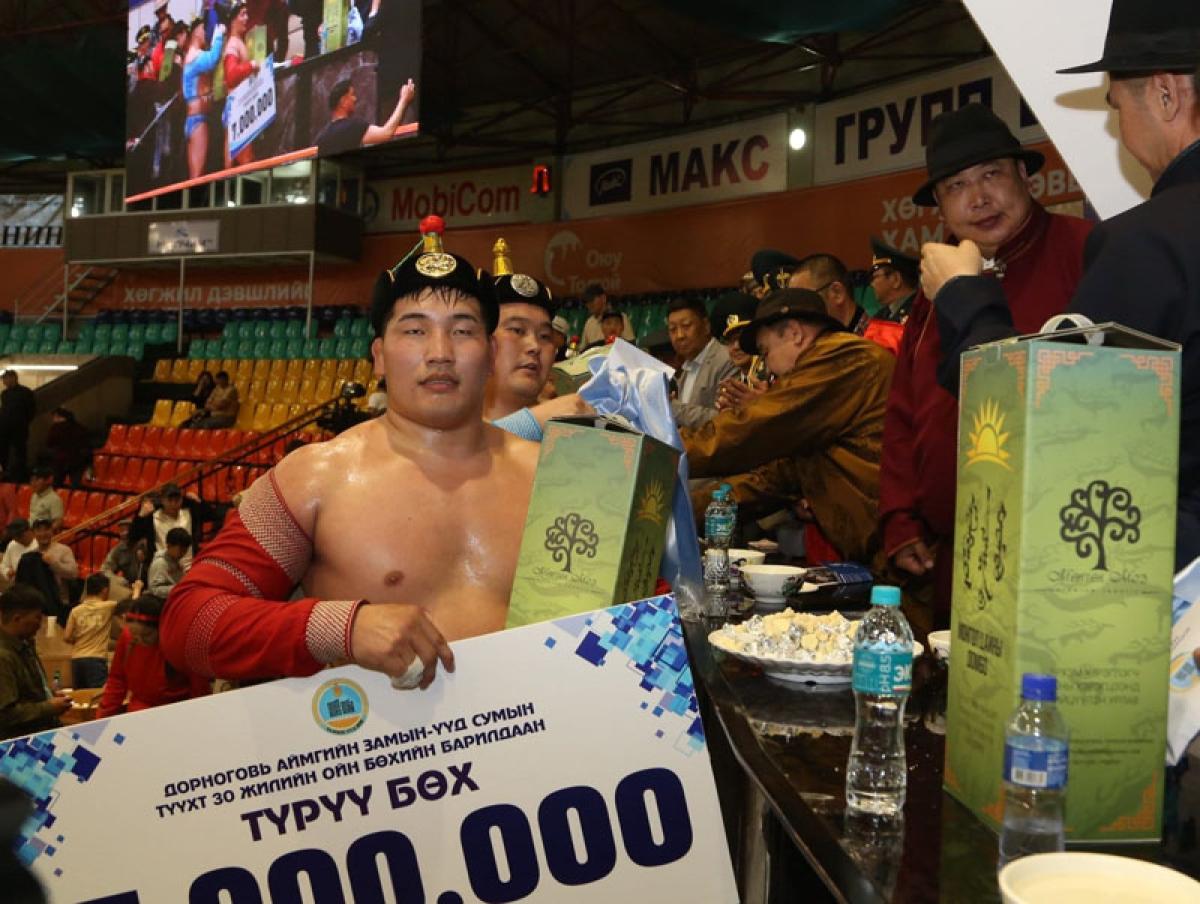 Тус барилдааны үеэр нэг сая төгрөгийн 5 азтан тодруулсан бөгөөд түрүү бөх 7 сая, үзүүр бөх 5 сая, дөрөвт үлдсэн бөхчүүд тус бүр 3 сая, наймд шалгарсан бөхчүүд тус бүр 1 сая төгрөгийн бай гардсан юм.