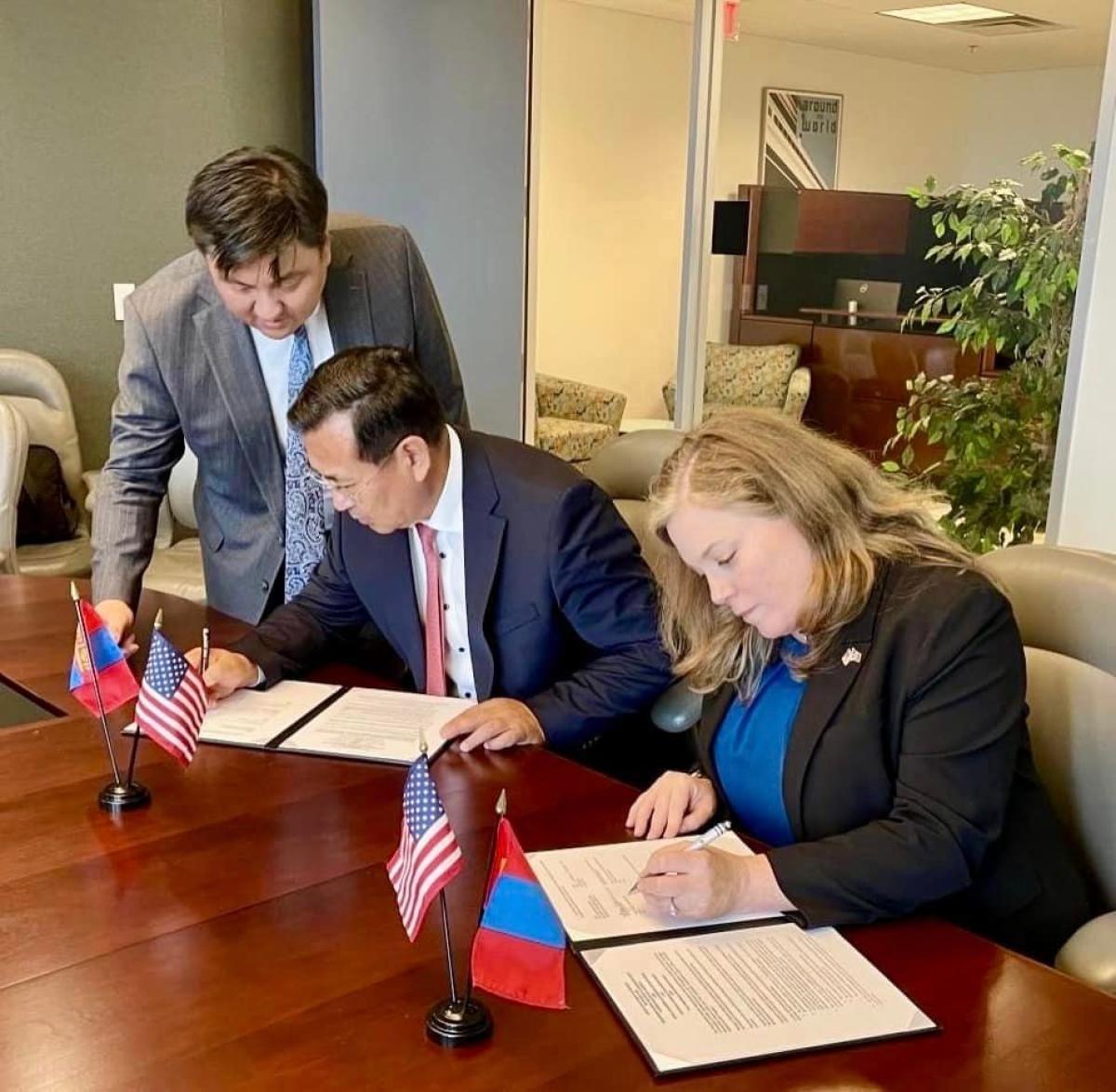 Монгол Улсын Зам тээврийн яамны Төрийн нарийн бичгийн дарга С.Батболд, АНУ-ын Тээврийн Аюулгүй Байдлын Агентлагийн Орлогч Дарга Holly E. Canevari нар 2024 оны 7 дугаар сарын 22-ны өдөр хамтарсан эрмэлзлийн бичигт гарын үсэг зурав.