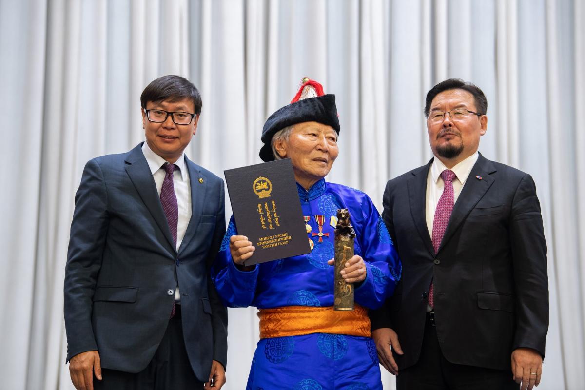 Монгол Улсын Хөдөлмөрийн баатар, Соёлын гавьяат зүтгэлтэн, зохиолч Чинагийн Галсан “Мэргэн ном” цомын эзэн боллоо.
