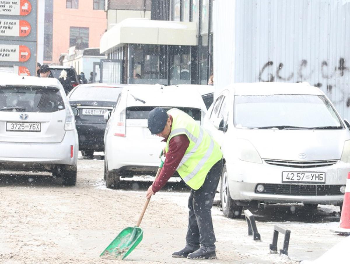2024 оны 12 дугаар сарын 27-ны өдөр нийслэлийн 9 дүүргийн хэмжээнд нийтийн эзэмшлийн зам талбайн цас, мөс цэвэрлэх ажилд нийт 18 байгууллагын 500 гаруй зам талбайн үйлчлэгч, 50 гаруй тусгай зориулалтын техник хэрэгсэлтэйгээр ажиллаж байна.