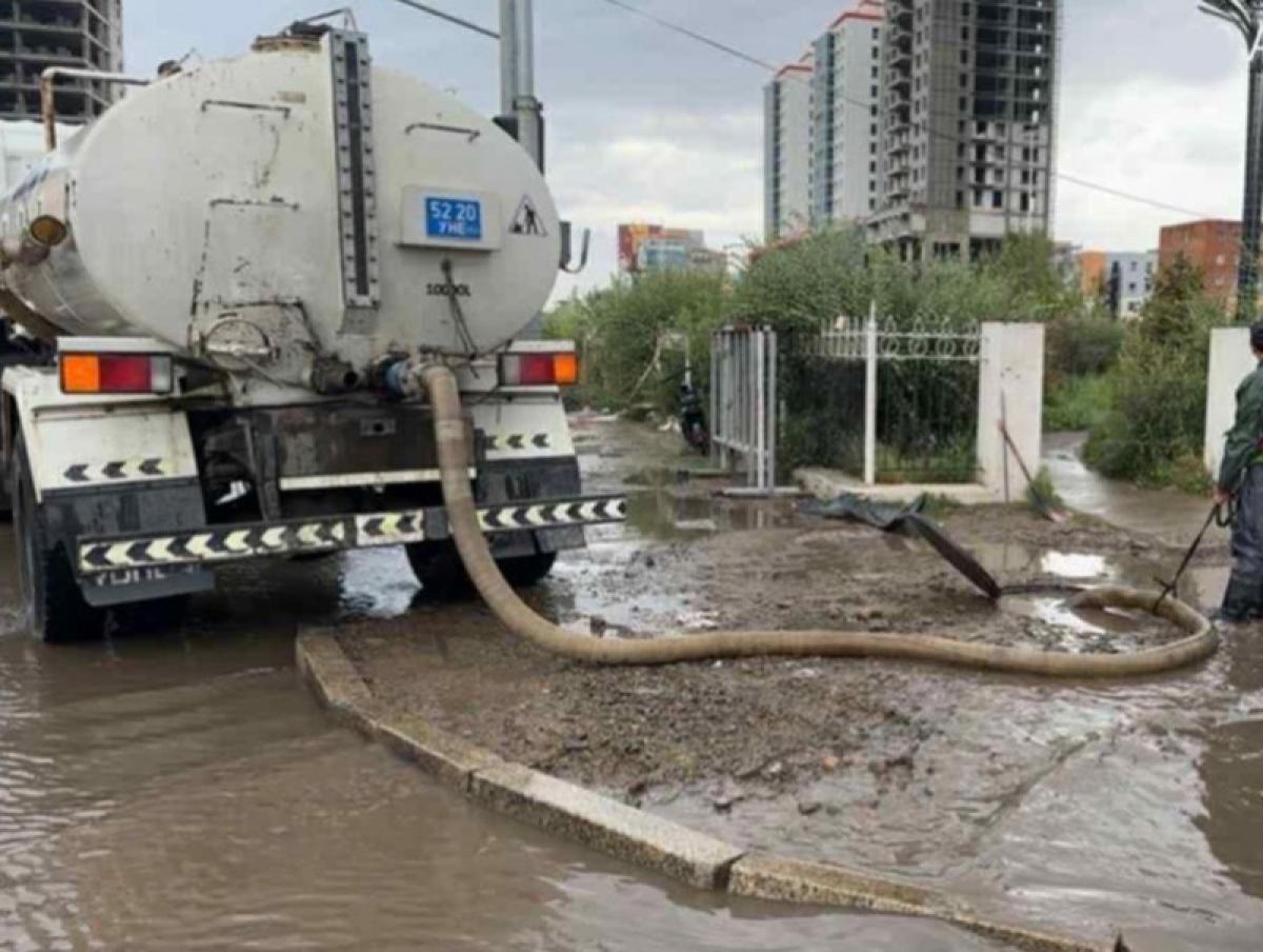 Үүнээс 5 байршилд онцгой байдал болон мэргэжлийн байгууллагуудын нийт 14 ажилтан, алба хаагч, 4 автомашин, 2 ус зайлуулах насосоор ус соруулан ажиллаж байна.
