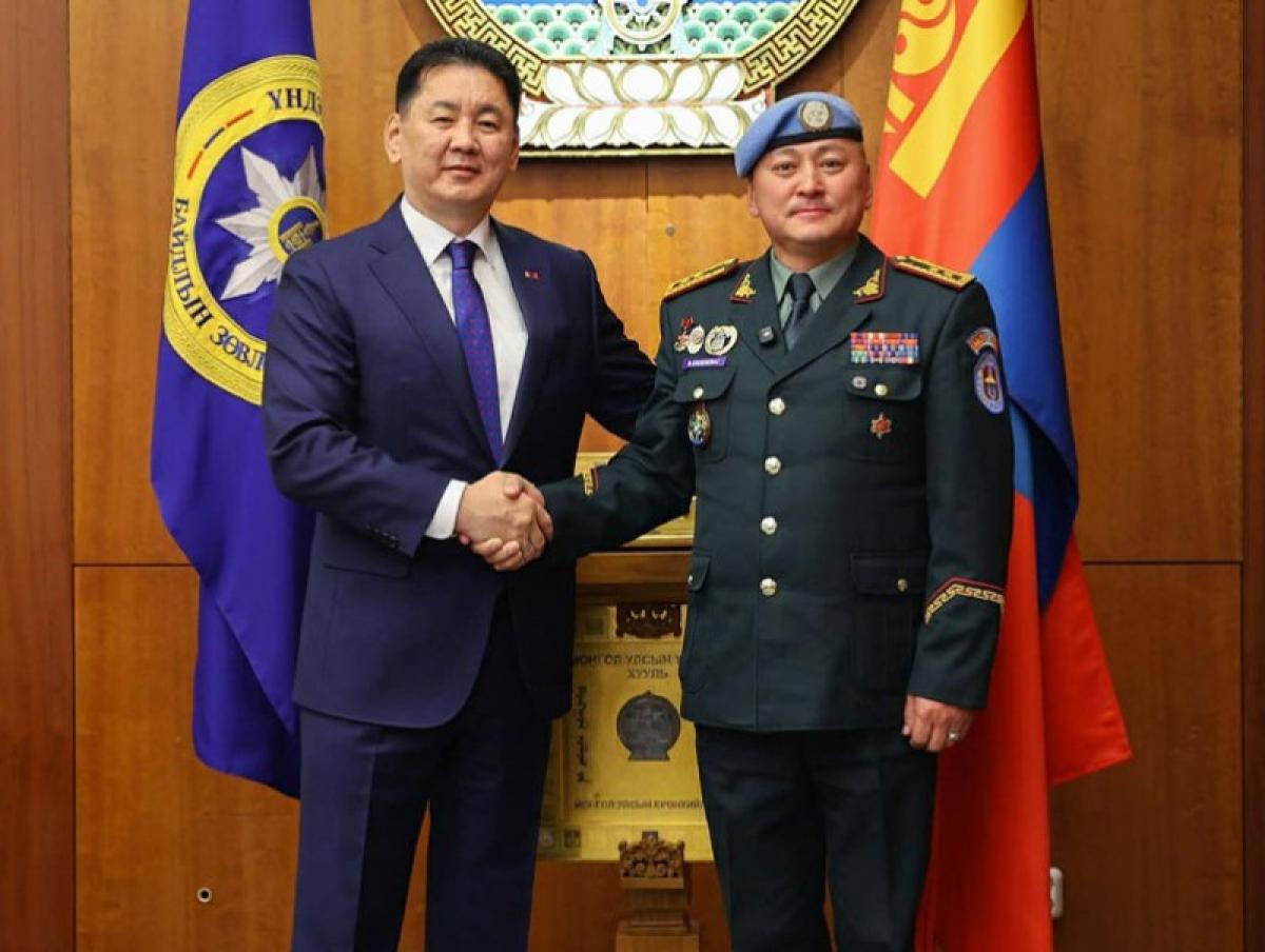 Монгол Улсын Ерөнхийлөгч, Зэвсэгт хүчний Ерөнхий командлагч Ухнаагийн Хүрэлсүх Бүгд Найрамдах Кипр Улс дахь НҮБ-ын энхийг сахиулах ажиллагааны Цэргийн хүчний командлагчаар ажилласан хошууч генерал Б.Эрдэнэбатыг хүлээн авч уулзлаа.